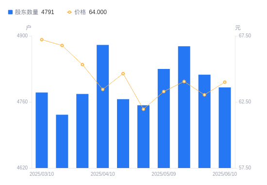 日期A股户数(户)流通A股户均持股数(股)户均持股市值(万元)2025-05-2048784582.4429.352025-05-0948304627.9829.292025-04-3047534702.9529.132025-04-1847664690.1230.322025-04-1048814579.6229.062025-03-3147774679.3230.572025-03-2047334722.8331.542025-03-1047805330.0635.832025-02-2847575355.8335.882025-02-2048635239.0834.13